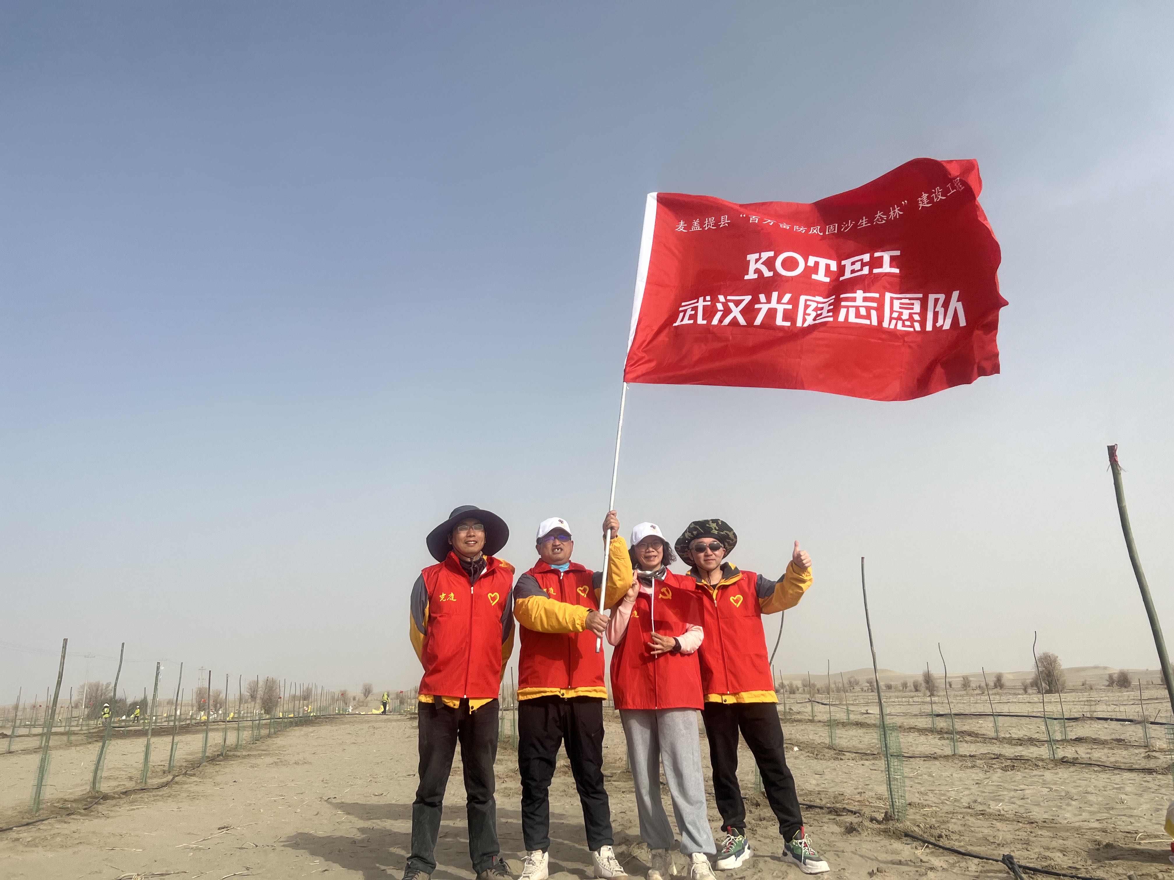“播绿沙漠,种植希望”,光庭志愿队远赴新疆喀什地区麦盖提县,参加塔克拉玛干沙漠“百万亩防风固沙生态林建设工程”植树活动不知不觉已过去一周,看到前线传回来的现场纪实,不仅为他们在风沙中认真学习荒漠植被知识、植树技能而感动,也为一望无垠的沙漠环境所震慑。希望光庭种植的树苗,能落成一片片树林,给沙漠带去更多绿色,让风沙不再肆虐,助力建设麦盖提县美好家园。