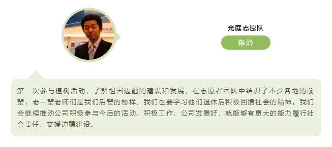 麦盖提公益植树活动暂且告一段落,脚印会被风沙覆盖,但绿色永远会留在沙漠里。希望更多的光庭人将光庭公益志愿队的精神传承下去,融入到工作和公益行动中,也期待更多的人参与到绿色公益发展中,共建绿色美丽家园。