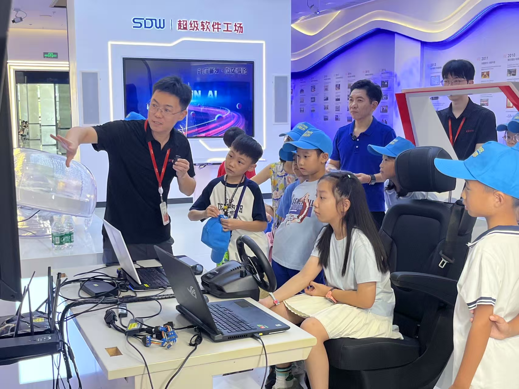 在互动体验区,光庭信息技术专家带领小朋友们戴上VR设备,沉浸式体验智能驾驶场景。通过模拟座舱内的人机交互,小朋友们亲身感受了车载小游戏、个性化界面设置等创新功能。动手操作AI软件开发平台SDW,直观了解“需求输入-需求分析-软件开发-软件测试-软件生成”的智能化开发流程。这种寓教于乐的互动方式,让前沿科技变得生动可感!