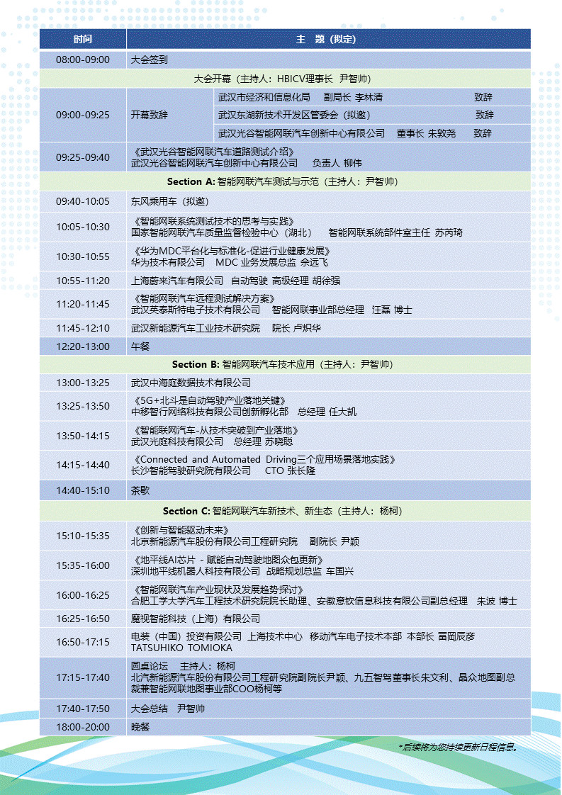 为促进国内外智能网联汽车技术交流与发展, 探索智能网联汽车行业国际间的合作, 在武汉市东湖新技术开发区管委会的指导下, 武汉光谷智能网联汽车创新中心有限公司联合湖北智能网联汽车产业创新联盟(HBICV)、襄阳达安汽车检测中心有限公司共同主办2019第八届湖北武汉智能网联汽车发展研讨会 。