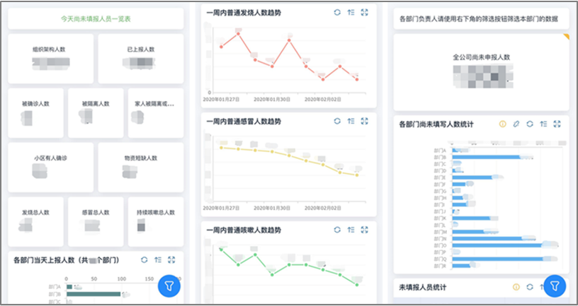 光庭信息在疫情期间利用信息化、数字化管理手段,开发完善疫情防控平台,全员健康、工时、信息安全、项目、物资领用等信息均通过系统上报信息化平台,同时进行大数据统计及分类管理。系统的预警提醒功能,能够及时发现异常情况,确保指挥部快速下达准确指示,为有效复工奠定了坚实基础。