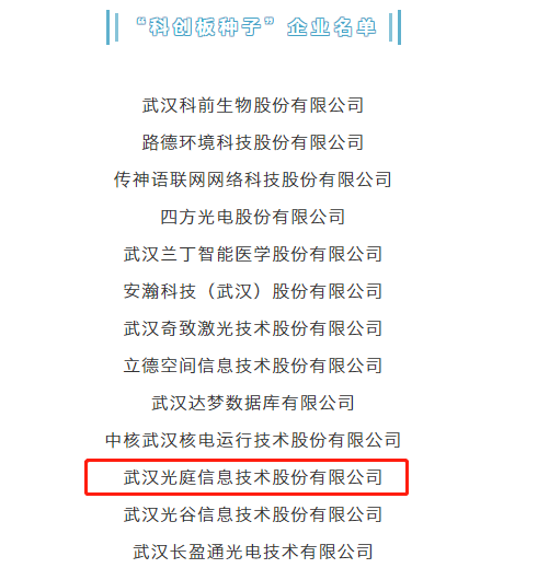 近日,湖北省正式发布2020-2021年度上市后备“金种子”、“科创板种子”企业名单。光庭公司作为重点上市后备梯队,入选“科创板种子”企业名单。