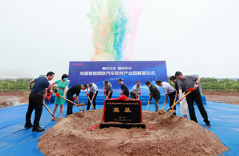 7月28日,光庭智能网联汽车软件产业园奠基仪式在武汉光谷光电产业园举行。武汉市区领导、客户、行业嘉宾以及员工代表出席了本次活动,并共同为产业园奠基培土。