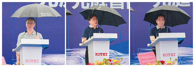 武汉市经济和信息化局副局长李林清(左)、光庭公司董事长朱敦尧(中)、总经理王军德(右)为奠基仪式致辞