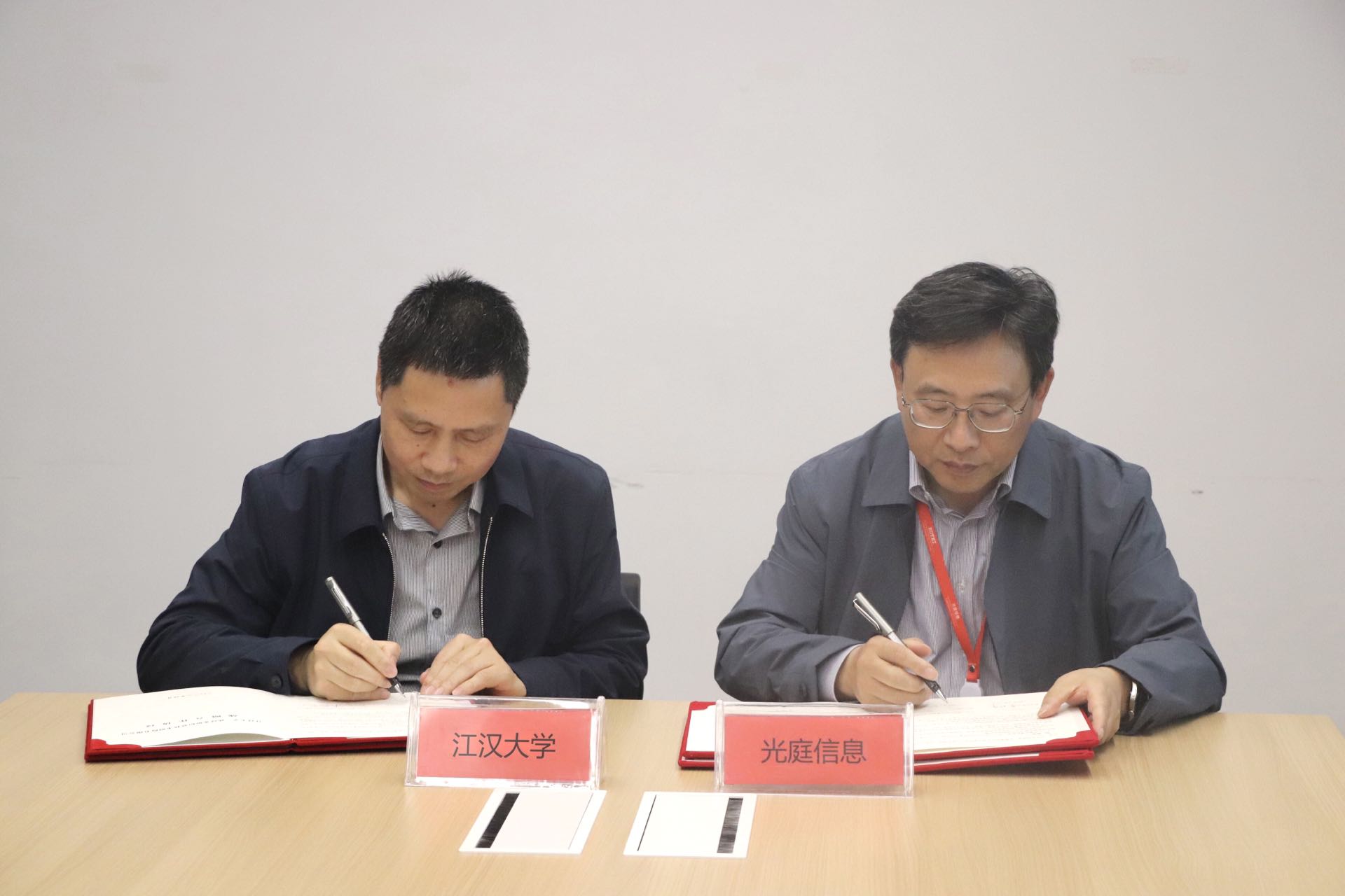 光庭信息董事长朱敦尧与江汉大学校长景新华代表校企双方签署《江汉大学&光庭信息校企战略合作协议》及“江汉大学人才培养基地”的揭牌。双方将在人才培养、人才资源共享、创新能力建设等方面开展全面深入合作,探索校企协同育人多种模式,推动产学研深度融合。
