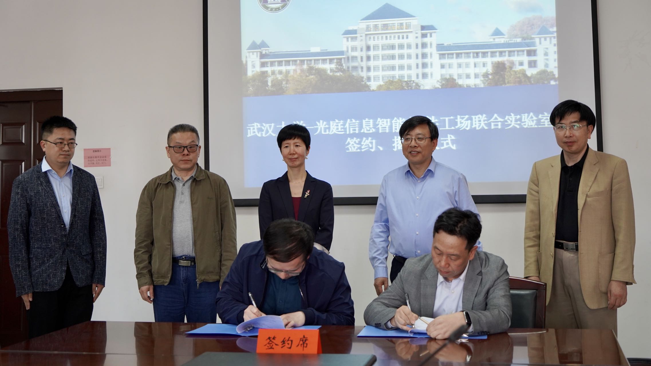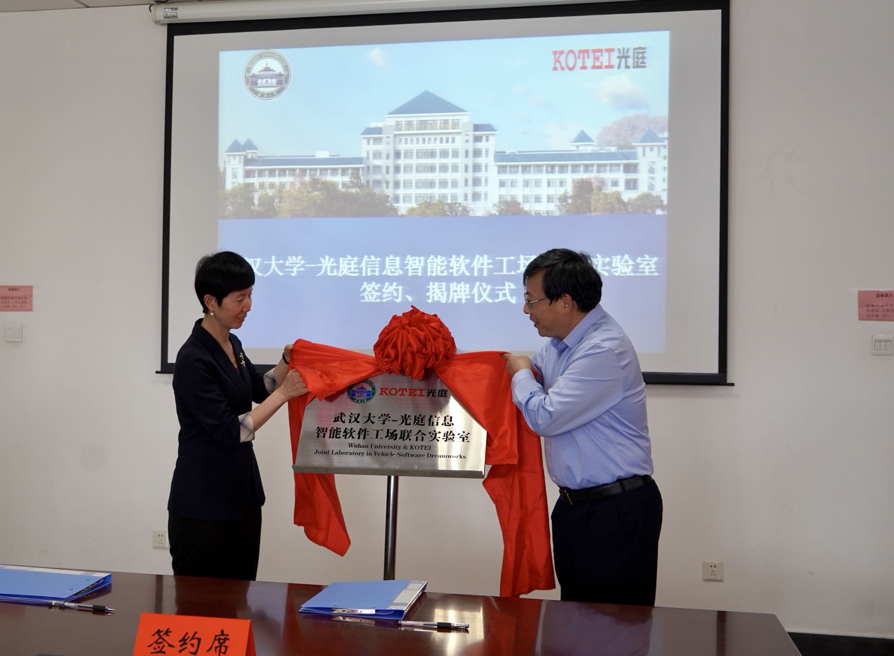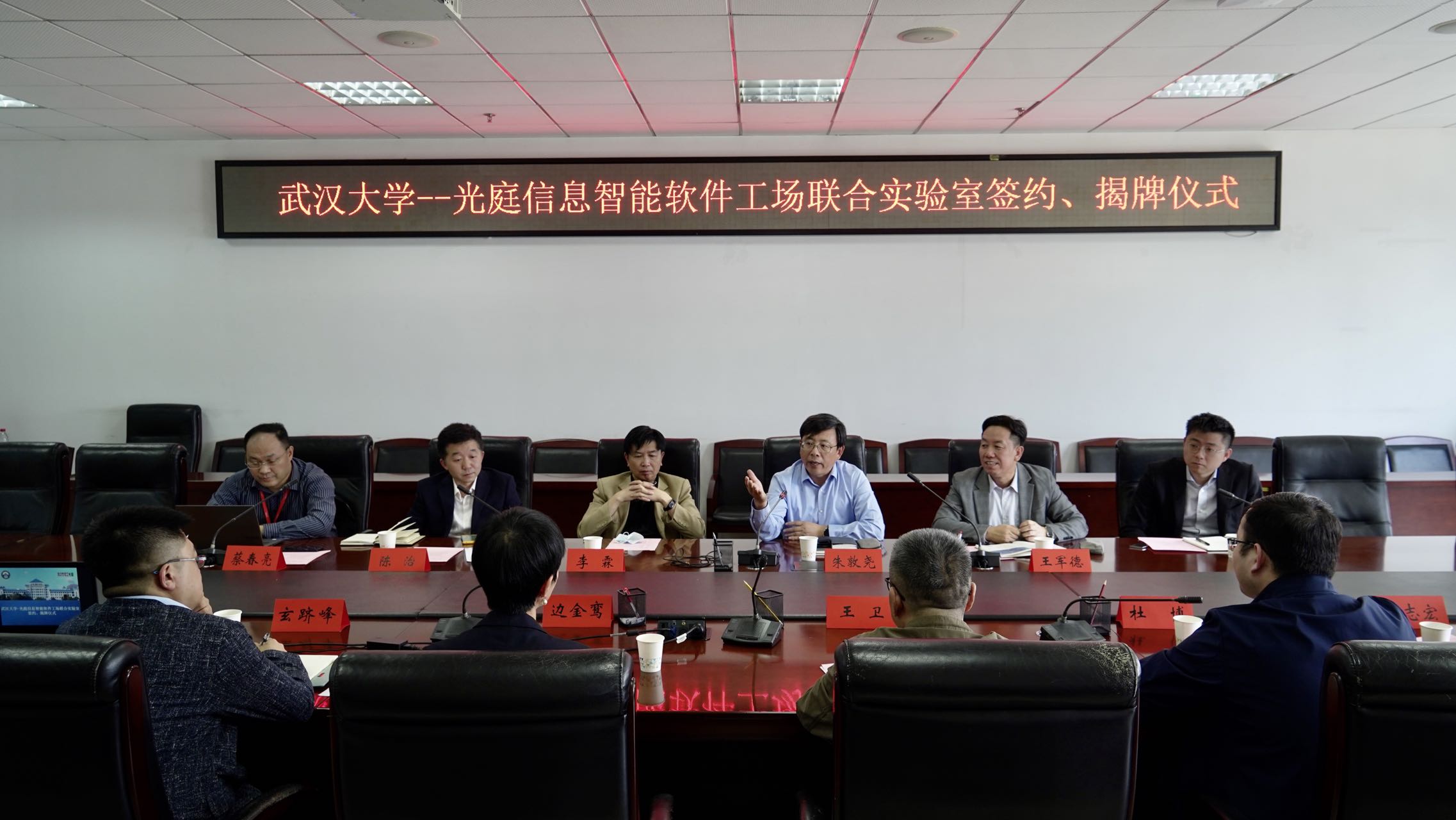 2022年5月16日,武汉大学与武汉光庭信息技术股份有限公司(以下简称“光庭信息”)共建“武汉大学-光庭信息智能软件工场联合实验室”签约暨揭牌仪式在武汉大学计算机学院举行。